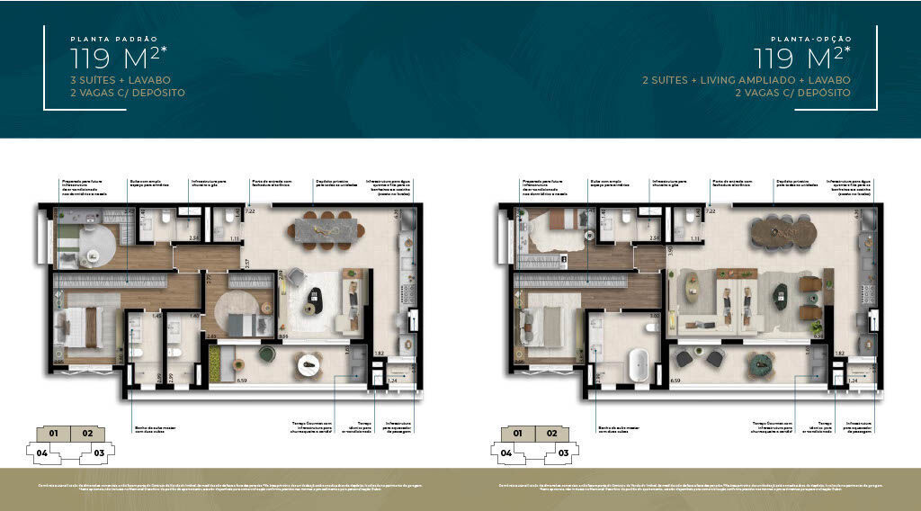 Apartamentos tipo (119m² e 120m²)